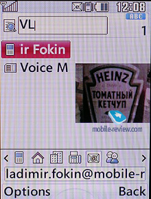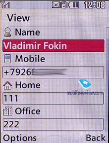 Конечно же, в аппарате имеется и быстрый набор до 8 номеров. ![]() Поиск в телефонной книге осуществляется по имени. Контакты отображаются списком, для выбранного контакта в нижней части экрана отображается номер, который был выбран основным. Горизонтальными отклонениями навигационной клавиши можно сразу увидеть и другие номера, присвоенные контакту, а также адрес электронной почты и группу. Остальная информация будет доступна для просмотра, только когда вы раскроете контакт. В настройках можно также выбрать тип отображения списка контактов, это могут быть только имена, имена и номер телефона (пример выше и последний вариант, в котором кроме имен и номеров отображается и миниатюра фотографии, присвоенной контакту).
