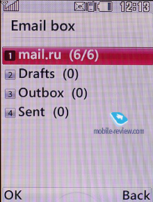 Почтовый клиент поддерживает POP3/IMAP/SMTP-почтовые ящики, ограничение на размер получаемых писем – 300 Кб, такое же ограничение и на объем отправляемых писем. В настройках почтового клиента можно выставить ограничение на объем получаемого письма, это 50, 100, 200 или 300 Кб. В качестве вложения может выступать любой файл, в том числе и из памяти внешней карты. Всего можно добавить три объекта в качестве вложений. По умолчанию клиент загружает только заголовки писем, а загрузить полное сообщение вы можете по необходимости вручную.