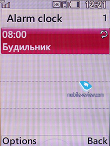 Задачи. Практически то же, что и события в календаре, только имеется возможность установить приоритет. Как и заметок, в телефоне может храниться максимум 50 задач. ![]() Инструменты. Будильник. В аппарате 5 независимых будильников, каждый из которых может срабатывать либо однократно, либо ежедневно, а также с понедельника по пятницу или с понедельника по субботу или с субботы по воскресенье. Для будильника возможно устанавливать собственный сигнал вызова, а также записывать для него небольшой заголовок.