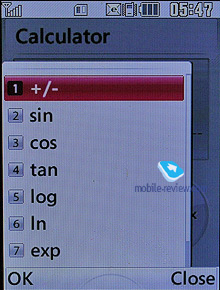 МультимедиаMP3-плеер. Простой плеер, который способен проигрывать мелодии как из памяти телефона, так и с карты памяти. Имеется возможность создавать собственные плей-листы, их количество не ограничено. Плеер может работать в фоновом режиме, для этого надо либо просто закрыть аппарат, либо выбрать из всплывающего меню пункт «Свернуть проигрыватель». В настройках имеется 11 предустановленных настроек эквалайзера. Есть и два типа оформления проигрывателя. Информация о проигрываемой композиции отображается как на внутреннем, так и на внешнем дисплее, в последнем случае она выводится в виде бегущей строки.