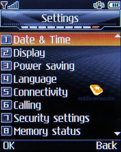 The phone also features a couple of Security settings, like PIN-code request, handset lock, as well as call barring, fixed dial number, security code – each items shows off wide range of available Impressions