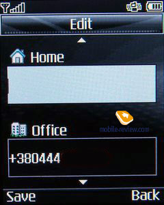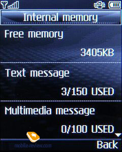 Those who tend to communicate using primarily SMS services will be pleased with memory reserved for these purposes – 150 SMS, 100 MMS and 110 ýëåêòðîííûõ ïèñåì (eMail). Maximum size of a MMS is 100 Kb, eMail – 100 Kb on sending and 300 Kb on uploading. While typing a text message you can change font color, style, size, background and alignment. The phone saves all attachments found in eMail, besides there is a possibility for sending files in any extension from the phone’s memory.
