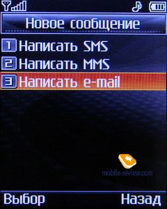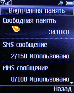 Людям, которые привыкли много общаться с помощью сообщений, понравится, что их максимальное количество – 150 SMS, 100 MMS и 110 электронных писем (eMail). Максимальный размер MMS-сообщения – 100 Кб, электронного письма – 100 Кб при отправке и 300 Кб при загрузке. В текстовых сообщениях можно менять цвет шрифта, его стиль, размер, фон и выравнивание. Телефон позволяет сохранять любые вложения, полученные с помощью электронной почты. Кроме этого, можно отправлять файлы любого расширения из мультимедийной памяти телефона.