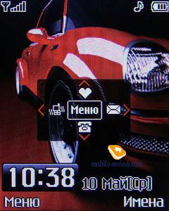 Описывать каждый пункт меню мы не будем, вы можете посмотреть статьи о последних моделях, таких, как P7200, M6100, M4410, а остановимся только на самых интересных частях. Единственное отличие между Chocolate Phone и обычными LG заключается в том, что в режиме ожидания на экран можно выводить Экранное меню. На дисплей выводится меню быстрого доступа, как в телефонах Motorola или Nokia (Series 40 Third Edition).