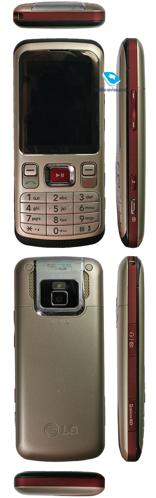 Звучание плеера неплохое, в наушниках звук сочный. В то же время в режиме громкой связи бывают хрипы, но они искупаются громкостью динамика, на максимуме его крайне хорошо слышно. Во время проигрывания играет светомузыка на верхнем торце аппарата. Боковая клавиша плеера запускает его или закрывает в два нажатия, как вам удобнее. Работа в фоновом режиме нормальна, вверху экрана показывается название проигрываемой композиции. ВпечатленияГромкость звонка очень высока за счет двух динамиков, аппарат слышно во всяких условиях, в том числе и на очень шумной улице. Во время разговора собеседника также хорошо слышно, тут нет никаких затруднений. Чувствительность аппарата типична для текущего поколения устройств, минусов замечено не было. Виброзвонок средний, не всегда ощущается из кармана одежды. При стоимости порядка 7000 рублей эта модель получилась не сильно выигрышной. Причина в большом количестве конкурирующих предложений с музыкальной направленностью. Стоит вспомнить уходящий аппарат Nokia 5320 XpressMusic, построенный на платформе S60, с той же ценой, наличие Nokia 5130 XpressMusic, предложений от Sony Ericsson. Явный минус продукта от LG - это, с одной стороны, обыденность дизайна, с другой - наличие светомузыки, которая может отпугнуть часть аудитории, так как выглядит несколько дешево, не привносит ничего в этот аппарат. Из громадных плюсов для молодежи - это громкость динамиков, они буквально кричат. Чего-то иного и также выдающегося в аппарате нет. Камера лучше, чем у конкурентов, за счет более высокого разрешения, автофокуса. Во всем остальном аппарат не выделяется. Модель явно нишевая и только. Ссылки по теме