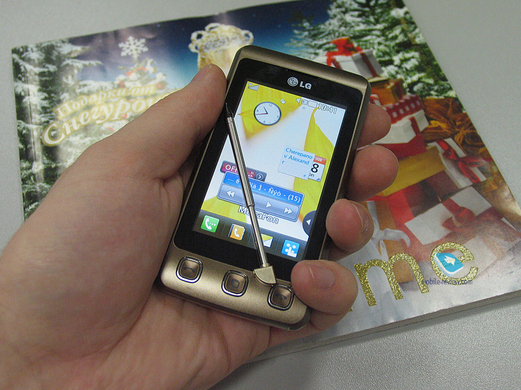 ВступлениеПостепенно на рынке начинают появляться недорогие мобильные телефоны с сенсорными экранами и touch-интерфейсом. Первой ласточкой таких «недорогих» телефонов стал аппарат Philips Xenium X800, при стоимости около 8000 рублей он не имеет на данный момент конкурентов. «Убийцей» X800 вполне могла бы стать модель LG KP500, о которой пойдет речь в данном обзоре, но производитель решил пожадничать, и на момент выхода аппарат будет стоить около 10000 рублей. Philips X800: ![]() LG KP500: ![]() Что же, модель LG KP500 вполне можно рассматривать как сильно упрощенную версию нынешнего флагмана корейской компании, модели LG KC910 Renoir. Производитель убрал из младшей модели мощную камеру, модуль Wi-Fi, GPS, кроме этого, были упрощены еще некоторые функции. В итоге все, что осталось, - это схожие детали внешнего оформления, крупный сенсорный дисплей и схожий интерфейс. Дизайн, габариты, управляющие элементыАппарат относится к тем телефонам, которые лучше выглядят на фотографиях, особенно официальных, чем в жизни. На глянцевых вылизанных картинках от производителя KP500 смотрится отлично, но как только вы берете аппарат в руки, приходит разочарование. При первом знакомстве с аппаратом вы сразу понимаете, что производитель в данной модели сэкономил на материалах корпуса, который выполнен из недорогого мягкого пластика. Также разочаровывает и такое же недорогое гладкое на ощупь покрытие, которое, кстати, достаточно сильно подвергнуто истиранию. Уже через небольшой промежуток времени на задней стенке аппарата появляются потертости, а также небольшие царапины. В руке при небольшом давлении корпус телефона начинает скрипеть, что не очень-то и приятно. С другой стороны, производителя винить особо не в чем, если бы он не экономил на материалах, то пришлось бы либо урезать функциональную часть, либо поднимать стоимость продукта. А вот сборка корпуса не вызывает нареканий, все детали подогнаны вплотную друг к другу, зазоры минимальные и равномерные. ![]() Внешне аппарат выглядит спокойно, не вызывает бурю эмоций. Внешне это симбиоз самого простого КПК на WM и модели LG KC910 Renoir. От последнего KP500 достались схожие по дизайну аппаратные клавиши на лицевой панели, которые являются самой яркой деталью оформления аппарата. С другой стороны, отметим, что не так уж и плохо выглядит аппарат, по крайней мере он не вызывает каких-то негативных эмоций. Для российского рынка аппарат будет доступен в двух цветовых решениях, это золотистый и коричневый с красным. Возможно, для других рынков модель будет представлена еще в двух цветовых решениях, а именно в черном и серебристом варианте. Молодым людям, для которых в первую очередь и предназначена модель, будет из чего выбрать. Производителю стоило добавить еще один вариант расцветки, а именно красный. Нет, не коричневый с красным, в котором все же первичен коричневый цвет, а красный вторичен, а именно полностью красный. Думаю, девушкам такой вариант оформления пришелся бы по душе. Кстати, раз уж речь идет о цвете, то стоит сказать, что в жизни цветовые решения аппарата выглядят более блеклыми, чем на рекламных картинках, что также немного портит первое впечатление о модели. ![]() ![]() Габариты модели типичны для подобных устройств (106.5х55.4х11.9 мм, вес 87 грамм), единственное, что KP500 выделяется небольшой толщиной корпуса. В руке телефон лежит хорошо, не вызывая никакого