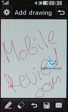 Редактор MMS-сообщений объединен с обычными текстовыми сообщениями, параметры сообщения меняются в зависимости от используемого контента. Никаких проблем с вводом данных для MMS нет, все просто и понятно. Максимальный объем MMS-сообщения не может превышать 300 Кб. Для MMS-сообщений в телефоне уже предустановлено пять шаблонов, также пользователь может самостоятельно создавать и сохранять дополнительные шаблоны сообщений.