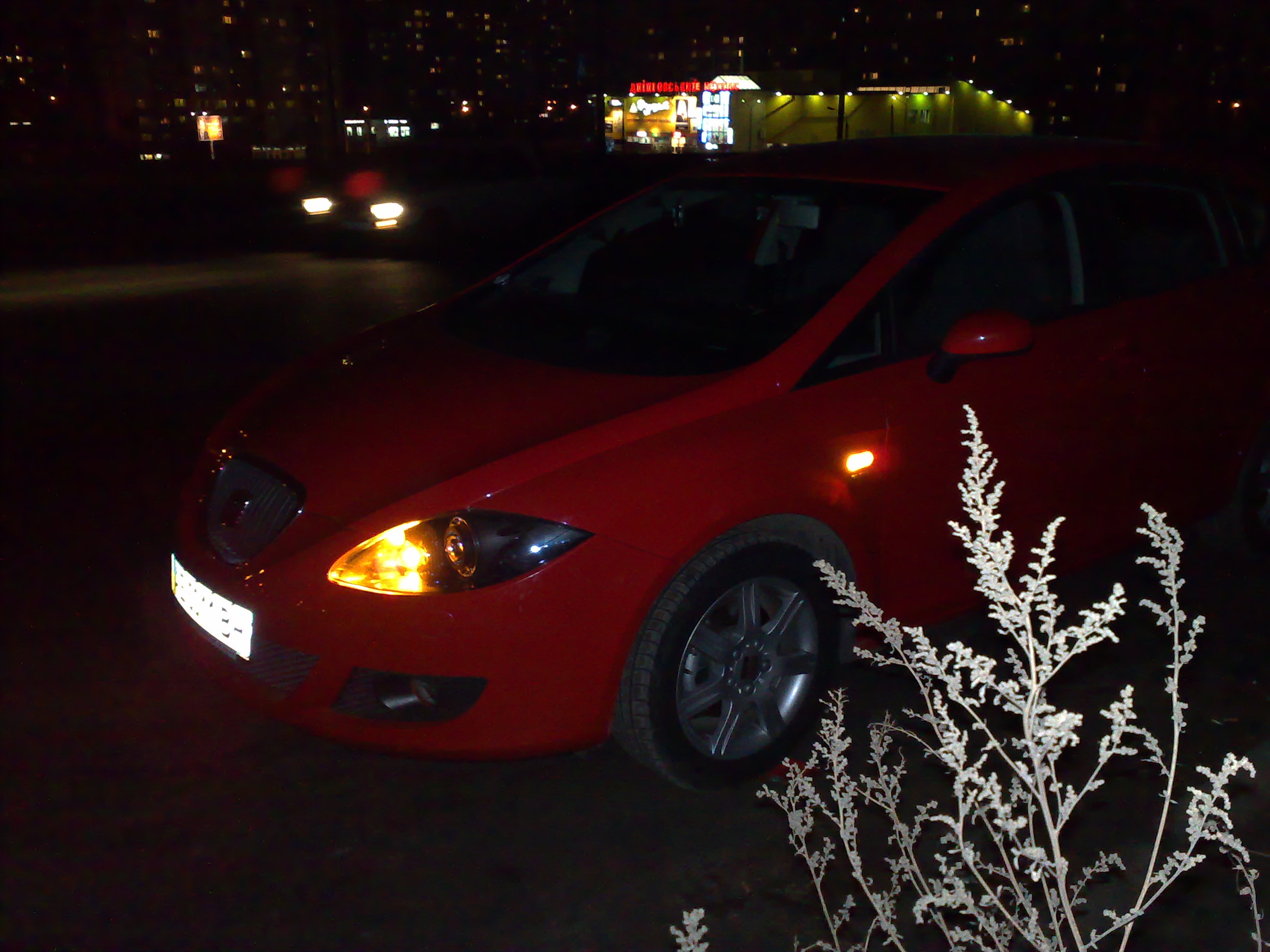Снимок ларька из салона автомобиля со вспышкой и без: