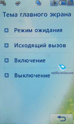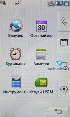Примеры видео LG KU990. Разрешение 320х240 точек. ГалереяАбсолютно новый раздел в телефонах LG предназначен исключительно для просмотра отснятого материала. В пейзажном режиме на дисплей выводится восемь иконок с миниатюрами, обозначающими тип файла – фото или видео. С помощью ползунка вверху экрана можно передвигаться между страницами, так же, как и нижние клавиши влево/вправо. Как и любой другой файл, для открытия фотографии или видео надо нажать на нем два раза. После первого нажатия иконка файла увеличивается, а в ее нижней части появляется строка со временем создания. Кроме обычного режима просмотра файлы можно просматривать в так званном случайном порядке, но единственное, что при этом изменяется, это то, что иконки сортируются в хаотичном порядке, а не четыре в четыре столбца, в каждом из которых две строчки. Как и при просмотре изображений или видео через меню телефона, вы можете воспользоваться редактированием контента. ![]() ![]() ![]() ![]() ![]() ![]() ![]() ![]() Интерфейс и менюПри первой загрузке или смене USIM-карты телефон предлагает настроить время, дату, а также сообщает о некоторых особенностях управления им. От настройки телефона при первой загрузке можно отказаться, но сделать это позже можно только вручную, так как запустить мастер из меню нельзя. В спящем режиме информация на дисплее не отображается, но при нажатии на любую из клавиш высвечивается информация о времени и дате, а также указание, какую клавишу нажать для снятия блокировки клавиатуры. В режиме ожидания внизу дисплея присутствуют четыре иконки для доступа к главному меню, набору телефонного номера, меню сообщений и телефонной книге. Верхняя часть дисплея традиционно отведена под статусную информацию и отображает следующие иконки: мультизадачный режим, уровень заряда аккумулятора, текущий профиль, при нажатии на которую можно вызвать полный список, будильник, если он установлен, фоновый режим, плеер, Bluetooth (в зависимости от режима работы модуля и подключенной гарнитуры иконка меняется) и уровень заряда сети. Если в фоновом режиме работает музыкальный проигрыватель, то под статусной строкой выводится бегущая строка с информацией о текущей композиции. При зарядке телефона четырехпозиционная шкала показывает, насколько заряжен аккумулятор, например, если мигают только две полоски, это значит, что телефон заряжен наполовину. Режим мультизадачности для стандартных приложений хоть и является чем-то новым для телефонов LG, но давно уже в полной мере реализован в телефонах Sony Ericsson, Nokia. Любое приложение можно свернуть в фоновый режим, исключение составляет только Java, запуск более чем одного приложения блокируется. Так, например, во время работы плеера вы легко можете активировать камеру, при этом проигрывание приостановится, а по окончанию работы с камерой возобновится с того же места, где оно было прервано.