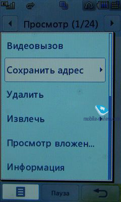 ВидеопроигрывательНесмотря на заявленную поддержку DivX-видео с разрешением вплоть до 640х480 точек, нам пришлось долго повозиться с тем, чтобы подобрать ролик, который запустится на экране телефона. В основном телефон выдавал ошибку о неподдерживаемом выходе. В конце концов, нам удалось просмотреть AVI-файл с разрешением 704х392 точки, длительностью 5 минут. Файлы формата WMV телефон не проигрывает, несмотря на то, что на сайте поддержка данного формата заявлена. Правда, на том же сайте указано, что телефон читает TXT-файлы, хотя на самом деле это не так. Получается, что в любом случае, для того чтобы смотреть фильм на экране телефона, надо предварительно конвертировать файл. Для AVI-файлов разрешение может быть выше, чем 640х480, а вот для МР4 мы столкнулись с непониманием файлов с таким разрешением, зато ролики 480х272 точки и ниже запускались без проблем. Интерфейс плеера во многом повторяет МР3-проигрыватель, и для этой цели вполне можно было сделать общий проигрыватель, как это сделали в S40 5-й редакции. Тем не менее, возможности плееров все же отличаются. При запуске проигрывателя в верхней части экрана отображается статусная строка с информацией об уровне сигнала сети и заряда батареи и иконка мультизадачности. Внизу экрана – стандартные три клавиши, отвечающие за закрытие проигрывателя, выключение звука и вызов меню. В зависимости от типа файла меню имеет несколько строк. Так, для AVI-файлов (файлы с разрешением 640х480 и выше): информация о файле, отправить (сообщение, Email, Bluetooth и YouTube) и ТВ-выход. Для 3GP- и AVI-файлов добавляется «использовать как мелодию голосового или видеовызова» и «редактор видео», о котором мы поговорим чуть ниже. Кроме статусных строк в плеере доступны: клавиша закрытия после проигрывания файла, повтора одного и того же файла или проигрывания всех файлов из списка, регулировка громкости, клавиша паузы и перемотки вперед/назад. Активным также является индикатор, указывающий, в каком месте сейчас проигрывается файл, а сам ползунок можно двигать с помощью пальцев или стилуса. В верхнем правом углу находится иконка открытия плей-листа, при нажатии на которую высвечивается горизонтальный список с названиями файлов, указанием, какой именно из них сейчас проигрывается, и его формат. Для того чтобы перейти в полноэкранный режим, надо прикоснуться один раз к экрану. После этого видео продолжает работать уже в альбомной ориентации. В этом режиме в левой части экрана отображается шкала регулировки звука, а в его нижней части – клавиши для перехода от одного ролика к другому, возврат к портретному режиму, перемотка вперед/назад и пауза. При просмотре видео в обычном режиме после нажатия паузы на месте клавиши, отвечающей за отключение звука, появляется клавиша, позволяющая сделать захват кадра ролика, в результате чего в памяти телефона сохраняется снимок с разрешением 240х180 точек.