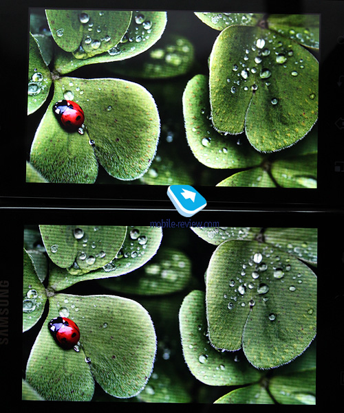 The table clearly shows that SuperAMOLED is by far the champion of power saving and I did not even include SuperAMOLED Plus screen phones into the test because the difference would be even more dramatic and the test would lose validity due to different Galaxy S2 hardware (processor, memory etc.). The NOVA screen does not have any advantages as compared to regular Super TFT screens – these are same generation technologies. In the auto brightness mode the screens consume about the same amount of energy while at maximum brightness NOVA is much less efficient. This is what behind the marketing. Let's now consider the picture quality – again I will compare it to Super TFT. I find them pretty much the same with a marginal superiority of NOVA – it looks slightly brighter and better. Have a look at the sample pictures and compare it to Samsung Galaxy S i9003. LG Optimus Black vs Samsung Galaxy S i9003: ![]() ![]() ![]() ![]() ![]() The pictures are very similar and I think in real life the difference is almost unnoticeable. The brightness of the NOVA screen produces great white and adds whiteness to black, so black is not really black like on AMOLED screens, it has some kind of hue. But I make another note here – the difference is practically unnoticeable – the screen is great and it is actually comparable to the quality of AMOLED screens. But if we speak about the general performance NOVA has made no breakthrough and its power efficiency is much worse than that of AMOLED screens. Under sunlight the screen looks quite usual and similar to AMOLED screens of the first generation as well as to SuperTFT screens. ![]() ![]() ![]() Bottom line for the screen – it offers rather poor view angles and very bright backlight, good white and messy black. All this is because the LG engineers changed a parameter of the technology to produce an eye catching picture. The power consumption is on a par with regular screens or higher at the maximum brightness level. All in all, the screen is not bad at all but it is not cutting edge in any respect. I doubt LG will be using this matric in many phones – I think it will remain a prerogative of certain models. Back to the table of contents >>> BatteryThe phone uses a 1500mAh Li-Ion battery – the very same Samsung Galaxy S uses which allows us to compare the performance of these phones. the result have been partially mentioned above so I will skip them. ![]() ![]() The phone is quoted to provide 11.5 hours of talk time (GSM) and up to 760 hours (30 days) of standby. These numbers, of course, work for ideal conditions as well as the data for Galaxy S. Let's start our comparison with music playback. I used same headphones on both phones at maximum volume, screens off, no running applications, no memory cards (playback from the inbuilt memory), equalizers off. Optimus Black worked for 25 hours just like Samsung Galaxy S. SG testing (infinite download via 3G) also showed parity between the phones – 4.5 hours. The life time in this case greatly depends on the network, the quality of coverage and even the influence of a single handset on another phone in the same network. Interestingly, with screens on the life time decreased by about an hour and with Samsung Galaxy S working a bit longer thanks to the lower power consumption of its screen. In the Wi-Fi data transfer test (infinite download, screens off) the phones again performed equally – the life time was identical. So, all in all, we see that LG Optimus Black can work for about the same time as Galaxy S i9003 but less than i9000. This amounts to most of one day if you talk a lot on the phone or a solid single day for all the other users – a rather regular result for an Android smartphone of this level. Back to the table of contents >>> Memory and Memory CardsThe phone features 1 GB of memory and you can add microSD hot swappable cards of up to 32 GB located under the back cover. 512 MB of RAM allow users around 200 MB after the start. It has no impact on the phone's performance and if you need the memory can be freed. There is one issue with memory cards, which I noticed by chance. No matter which card you use in terms of class (data transfer speed) if you have more than 1000 files (it is a rough estimate), the speed of access to such a card will always be minimal. I do not know what causes this problem, but it must be a software bug in this firmware rather than an issue with Android. Back to the table of contents >>> PerformanceThe handset has a 1 GHz TI OMAP 3630 processor, which is similar to Samsung Galaxy S i9003. There are no changes here, but this device does not impress in synthetic benchmark tests. Do not pay attention to them while choosing a phone to buy. For example, in Quadrant Standard the model gets around 1250 points and easily beats first Galaxy S and Galaxy S i9003 (800-900 points). In the interface and running of apps you will not feel the speed difference. Nevertheless, Optimus Black has a couple of serious software issues. ![]() When you start "heavy" apps any of them can close down automatically or the overall stability will suffer. I would like to remind you that the model comes equipped with Android 2.2 and so far there are no plans for the upgrade (in January we were promised 2.3 or even 2.4 in May, but it did not happen). To some extent the speed boost will be achieved when the new OS appears, but it will not solve issues with the speed of LG interface and inbuilt features. They drag the phone down and adversely affect the stability. The speed of camera operation is extremely low. You take a picture and hear a sound, but the shot is not saved at the time, which is inappropriate. By moving your hand you can blur the image. PowerVR SGX530 GPU graphic processor is rather weak and is identical to that of Samsung Galaxy S i9003. Back to the table of contents >>> Gesture ControlsThe phone supports the full gesture controls, which is a unique selling point of the model. If you are 