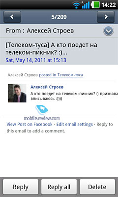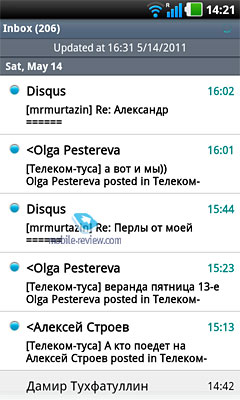 E-mail is represented by the LG client, which offers a joint mailbox featuring messages from all accounts you have. There is nothing special about it.