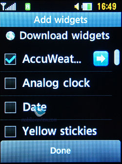 Пример видео (3gp, 0,3 мб) >>> МенюВ аппарате используется стандартная для недорогих тачфонов от LG платформа A-class. На главном экране в нижней его части постоянно отображается панель с быстрым запуском приложений, переназначить доступ к которым нельзя. Здесь находится все самое необходимое: вызов клавиатуры набора номера, телефонная книга, сообщения и доступ к главному меню. В верхней части экрана, как обычно, находится служебная строка, на которой отображается вся необходимая информация. В аппарате имеются три рабочих стола, на которые можно вынести как виджеты, так и контакты, а также ярлыки некоторых пунктов меню для быстрого доступа к ним. Всего в аппарате доступно 22 виджета, увеличить их количество можно, загрузив дополнительные виджеты со специального сайта. Кроме вполне полезных виджетов вроде управления плеером или FM-радио, календаря и погоды, есть и просто ярлыки, которые только открывают определенную страничку в браузере устройства. Все элементы, которые вы выносите на рабочий стол, размещаются в пределах экрана, вынести что-то за его рамки нельзя. Да, в T500 функция Livesquare (быстрый доступ к контактам) стала доступна в виде отдельного виджета, который можно по необходимости включить или отключить. Приятно, что теперь любой из рабочих столов вы можете формировать на свое усмотрение, не как в прежних моделях, где один стол отводился под виджеты, другой под контакты, а третий под Livesquare.