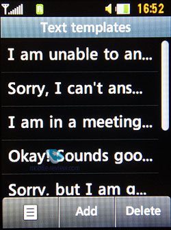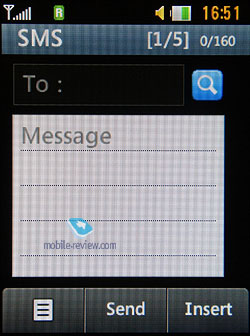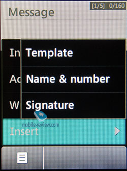 ![]() Сообщения. В памяти аппарата может храниться до 500 текстовых сообщений. Аппарат умеет работать с SMS-сообщениями, но вот поддержки EMS-сообщений в нем нет. В телефоне предустановленно 10 текстовых шаблонов, которые пользователь может менять на свое усмотрение. Поддерживается работа со склеенными сообщениями, при отправке максимальное число символов не может превышать 800. Аппаратом поддерживается мультирассылка сообщений максимум на 10 номеров. Номера забиваются в выделенном поле на том же экране, где и текст сообщения. Редактор MMS-сообщений объединен с обычными текстовыми сообщениями, параметры сообщения меняются в зависимости от используемого контента. Никаких проблем с вводом данных для MMS нет, все просто и понятно. Максимальный объем MMS-сообщения не может превышать 300 КБ. Для MMS-сообщений в телефоне уже предустановлено пять шаблонов, также пользователь может самостоятельно создавать и сохранять дополнительные шаблоны сообщений.