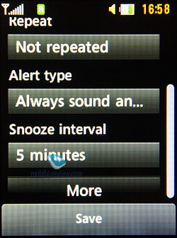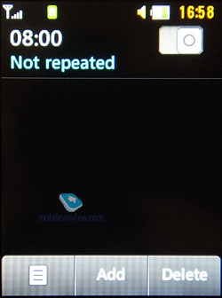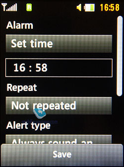 Заметки. Здесь вы можете создавать обычные текстовые заметки, которых всего может быть не более 50. ![]() Будильник. В телефоне может быть создано до 5 будильников. Для каждого отдельно задается время, выбирается частота срабатывания: ежедневно, один раз или по выбранным дням недели. Кроме этого, отдельно для каждого из них задается сигнал вызова, а также имеется возможность сделать небольшую текстовую заметку.