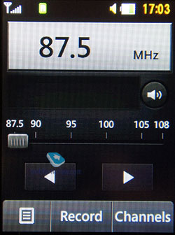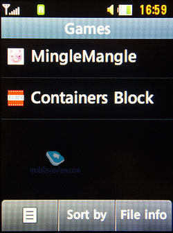 Мои папки. За этим названием скрывается простой файл-менеджер, в котором можно просмотреть информацию, которая хранится в памяти телефона и на карте памяти. При просмотре вся информация и с карты, и из памяти телефона сортируется по типу данных, например, все картинки можно найти в папке «Изображения», а видеофайлы - в папке «Видео», что облегчает просмотр. Можно просмотреть и отдельно данные на карте памяти, где они отображаются в том виде, в котором они и записаны, то есть без сортировки. В файл-менеджере доступны все необходимые действия с объектами, их можно перемещать, копировать, передавать посредством сообщений или же по Bluetooth на другие устройства, а также создавать новые папки и переименовывать их, а также файлы. ![]() MP3-плеер. Телефон поддерживает следующие типы музыкальных файлов: MP3, AAC, AAC+ и WMA. В плеере имеется сортировка композиций по исполнителям, альбомам и жанрам. Кроме этого, присутствует общий список всех композиций, а также их случайное воспроизведение из этого списка. Также пользователь может создавать собственные плей-листы. Телефон без труда работает с русскоязычными тегами, также имеется функция отображения обложек альбомов. Проигрыватель умеет работать в фоновом режиме, а вся информация отображается в соответствующем виджете или просто на экране. В плеере имеется 8 предустановленных настроек эквалайзера, таких как: обычный, классика, джаз, поп, рок, высокие частоты и Bass Boost. Телефон проигрывает музыку хорошо, особенно если штатную гарнитуру заменить на что-то более качественное. Качество проигрывания, конечно, не самое высокое, но вполне приемлемое для телефона. Громкость воспроизведения также хорошая, ее вполне хватает для комфортного прослушивания плеера в метро, даже с небольшим запасом по громкости. При воспроизведении музыки через динамик качество будет не очень, как, впрочем, и громкость. ![]() FM-радио. В памяти телефона можно сохранять до 50 радиостанций. Имеется и поддержка RDS, только вот просмотр информации доступен только в открытом приложении, но не через виджет. Качество приема у встроенного радио хорошее, работает оно только при подключенной гарнитуре, которая используется в качестве антенны. Качество приема радио вполне приличное. Да, имеется возможность записи эфира радиостанций, причем включить его можно не только через экран FM-радио, но и с виджета. ![]() Игры и приложения. Здесь хранятся Java-приложения, установленные на аппарат. В телефоне уже предустановлены две Java-игры, это Mingle Mangle и Containers Block. Также в телефоне уже предустановлены Java-приложения Mobile Agent и Opera mini. Да, Java нельзя сворачивать в фон, так что использовать на устройстве месседжеры неудобно.