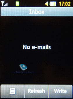 ![]() Почтовый клиент может работать с несколькими учетными записями, поддерживаются самые распространенные типы почтовых ящиков, это IMAP4, POP3 и SMTP. Настройки почтового клиента максимально гибкие, вы можете настроить получение только заголовков, отметить получение только новых писем, а также выбрать, сохранять их на сервере или нет. Можно выбрать максимальное количество сообщений, сохраняемых в телефоне, в интервале от 10 до 300, выставлять приоритеты для отправляемых сообщений, настроить автополучение почты с определенным интервалом времени. Проблем с русскоязычными кодировками в телефоне нет. Максимальный объем одного сообщения не может превышать 1 МБ. Аппарат также без труда работает с вложениями, позволяя просматривать офисные документы через предустановленную программу Picsel Viewer. Программа поддерживает следующие форматы файлов: TXT, PDF, DOC, PPT, XLS. Открытие документов и их масштабирование происходит достаточно быстро.