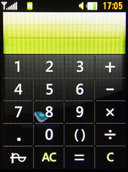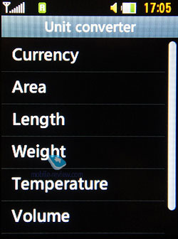 Диктофон в аппарате не умеет писать разговор, а может работать только в режиме ожидания. В настройках возможно выбрать запись с ограничением для MMS или же без ограничений. ![]() Инструменты. Сюда входят: калькулятор, конвертер величин, объединенный с конвертером валют, калькулятор чаевых, функция мирового времени и секундомер.