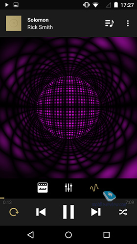 Приложения MarshallПри нажатии кнопки M открывается приложение Marshall, сразу скажу, это странная штука, явно хотели придумать какую-то программную фишку, но получилась довольно запутанная история. Приложение - по сути, хаб, здесь можно посмотреть какую-то информацию про артистов из социальных сетей, быстро перейти к воспроизведению последнего трека в плеере, перейти к SoundCloud, Spotify и MixCloud, плееры уже установлены. Аппарат поддерживает FLAC, так что можете смело загружать в память тяжелые папки и слушать на смартфоне. В приложении есть возможность установить мелодии, выбрать громкость уведомлений, включить вибрацию - в общем, тут собрали все, так или иначе связанное со звуком. В базовом плеере можно быстро выбрать предустановку эквалайзера или отрегулировать звучание самостоятельно, сохранить пресет. Визуально свой плеер смотрится замечательно, есть усиление басов с отдельной кнопки, визуализация, файлы FLAC открывались без проблем. Кстати, советую почаще использовать именно этот формат, даже с комплектными наушниками разница очень и очень заметна.