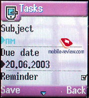 Messages, in general, are traditional, there are templates, you can edit them. But the height of comfort is that the written message for sending needs several actions. So you press ОК key, then you see your message, it's the preview. The following pressing on ОК calls number input, once again having confirmed the input, you will see the further menu. You will ask, whether you want to send the message, you should press the left key to send the message at last. It is not clear for whom has been developed such "convenience". The phone supports EMS. ![]()