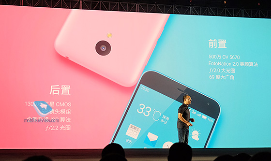 Камеры в новом устройстве остались теми же: основная с разрешением 13 МП, f/2.2, оснащена вспышкой. Фронтальная с разрешением 5 МП, сенсор OV5670, угол 69 градусов, f/2.0, имеет режим наложения эффектов улучшения лица в режиме реального времени, то есть вы можете увидеть наложенный эффект до того, как сделаете снимок. Здесь нужно отметить, что у основных конкурентов Meizu m2 mini, смартфонов Xiaomi Redmi 2 и 2A, камеры проще – 8 и 2 МП основной и фронтальный модули соответственно.