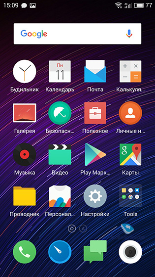 Аппарат работает на операционной системе Google Android версии 5.2. Поскольку в Meizu применяется фирменная оболочка Flyme (в данном случае версия 5.1.5.0G), то от «пятерки» ничего не остается.