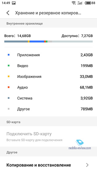 Остальное стандартно: Wi-Fi b/g/n dual-band Wi-Fi (2.4ГГц/5ГГц) у M5s (в M5c только 2.4 ГГц), Bluetooth 4.1, разъем microUSB (USB 2.0 с поддержкой OTG) для заряда/синхронизации. Навигация GPS/ГЛОНАСС работает без проблем одинаково. Больше спутников и быстрее находит Meizu M5s, чувствительность значительно выше именно у этой модели.