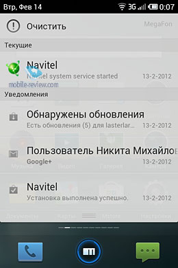 Системная строка в этой оболочке самая обыкновенная, отличие ее от стандартной системной строки Android только в том, что она не раскрывается всегда полностью, а подгоняется по высоте открытия к количеству уведомлений в ней. Впрочем, это проще рассмотреть на скриншоте, чем по моему объяснению.