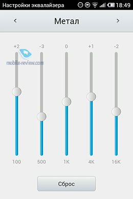 ![]() В системных настройках можно выбрать один из трех режимов работы процессора, «Производительность ЦП: высокая, нормальная, низкая». В режиме высокой производительности процессор работает на частоте 1400 МГц, в режиме нормальной – 1000 МГц, а режиме низкой – 600 МГц. Единственный недостаток устройства по части скорости работы – серьезный нагрев корпуса при нагрузках и активной работе телефонного модуля, будь то просмотр видео, игра или разговор по телефону. Впрочем, разработчикам эта проблема известна, и к моменту начала продаж аппарата ее должны исправить. Воспроизведение видеоCмартфон поддерживает воспроизведение «из коробки» видео в форматах: MP4, 3GP, MOV, MKV, AVI, FLV, MPEG, M2TS, TS (поддерживаемые кодеки: DivX, Xvid, 3g2, wmv и др). Для проверки возможностей Meizu MX по части воспроизведения видео я запускал на нем трейлер фильма «Хроника» в разрешениях 1280x720 точек (720p) и 1920x1080 точек (1080p). В случае воспроизведения ролика в 720p никаких проблем даже на динамичных сценах, на трейлере в качестве 1080p за 3 минуты проигрывания я заметил пару рывков, но если не обращать на них внимания, а точнее, не ждать, что они появятся, этот момент практически не заметен. ![]() ![]() Стандартный видеопроигрыватель Meizu MX позволяет выбирать аудиодорожку, а также субтитры. Плеер поддерживает как «вшитые» в видеофайл субтитры, так и отдельные. Для того чтобы они отображались, файл субтитров нужно положить в ту же папку, где лежит просматриваемый видеофайл и назвать таким же, как видеофайл, именем. Проигрыватель поддерживает файлы субтитров с расширением *.SRT (кодировка UNICODE). ![]() ![]() ![]() ![]() Звук, музыкальный плеерКак вы знаете, со звуком у меня не очень, поэтому я просто постараюсь коротко описать музыкальный плеер и техническую составляющую, а также свои личные впечатления о качестве звучания, на всякий случай. За звук в Meizu MX отвечает отдельный аудиочип Wolfson WM8958. С характеристиками чипа вы можете ознакомиться на официальном сайте, здесь. Аналогичный звуковой чип используется и в некоторых других смартфонах и планшетах, например, в HP TouchPad (вскрытие HP TouchPad на сайте techrepiblic.com). Версия чипа WM8994, которая во многом схожа с 8958, используется в планшете Samsung Galaxy Tab 10.1 (вскрытие Samsung Galaxy Tab 10.1 на сайте techrepiblic.com). Для того, чтобы оценить качество звучания Meizu MX, я взял наушники Marshall Major и стал слушать на смартфоне привычную для себя музыку, несколько треков. Затем воткнул эти же наушники в HTC Sensation XL и послушал эти треки на нем. И так несколько раз, чтобы уж наверняка. Так вот, как и ожидалось, мой поврежденный ногами медведя слух не обнаружил разницы в качестве звучания между Meizu MX и HTC Sensation XL. Могу только отметить, что на мой слух звучит аппарат хорошо и, что тоже важно, громко. Впрочем, вам я рекомендую послушать смартфон самостоятельно перед покупкой, так оно будет вернее. ![]() Музыкальный проигрыватель с пятиполосным эквалайзером, который можно настроить, выбрав один из готовых сценариев (Поп, Рок, Металл, Классика, Супер бас), или вручную.