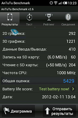 По скорости работы к аппарату нет никаких претензий, меню не тормозит и не подвисает, программы открываются быстро, на смартфоне можно играть практически в любые доступные в Market игры. Ниже приведены скриншоты с результатами тестирования Meizu MX в различных бенчмарках.