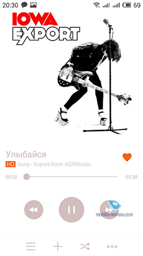 МультимедиаМузыкальный плеер стандартный для Meizu. Он немного видоизменился – просто иконки стали круглыми.