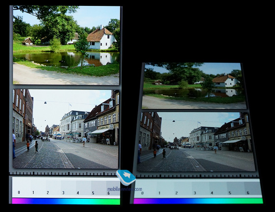 Углы обзора максимальные, под определенными наклонами экрана картинка слегка зеленит.