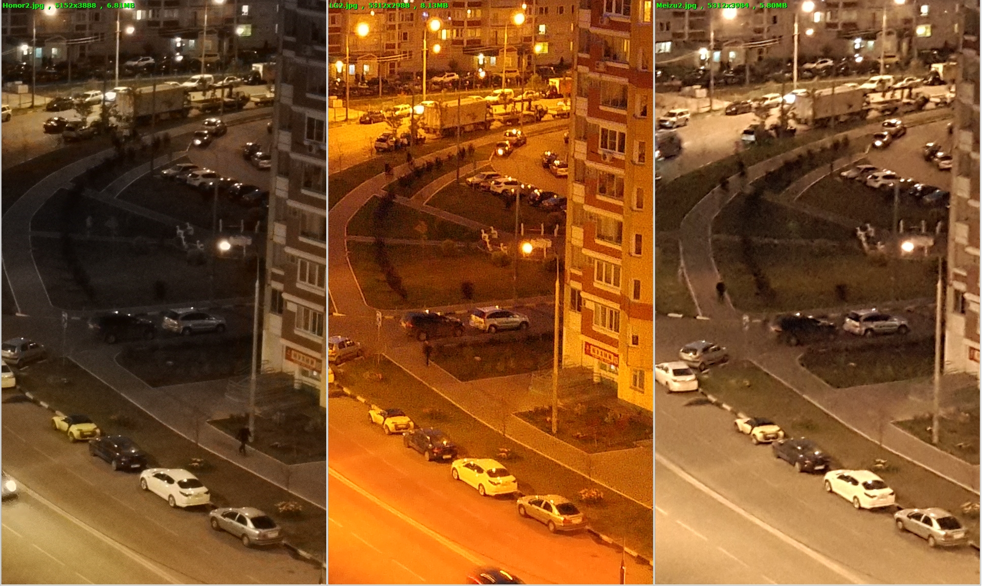 КамерыДве камеры: основная на 21,16 МП (6 линз, диафрагма F2.2, Sony IMX230 площадью 1/2.4” с размером пикселя 1.12 нм), фронтальная 5 МП (F2.0), сенсор OV5670. Вспышка имеет два цвета свечения: холодный и теплый. Есть лазерная фокусировка. Оптическая стабилизация отсутствует. Модуль Sony IMX230 стал первым многослойным CMOS-сенсором с фазовым автофокусом. Если не сравнивать камеру Meizu с другими устройствами примерно той же ценовой категории, то перед вами отличный модуль. Всегда быстрая и точная фокусировка, точный баланс белого, широкие динамический диапазон и угол обзора, минимальное количество шумов даже в недостаточных условиях освещения. Единственное нарекание – невысокая детализация. Ниже привожу сравнение Huawei Honor 7, LG G4 и Meizu Pro 5: Комнатное освещение (центральная часть кадра) Комнатное освещение (угловая часть кадра) Ночная улица Комнатное освещение (игрушки) Одна лампа накаливания 40 Вт в помещении 10 м2 (очень темно, рисунок на календаре) Можете заметить, что самую резкую картинку дает LG G4, следом идет Honor 7, а вот Pro 5 - в отстающих. В некоторых условиях лучше себя ведет Honor 7 – изображение ночной улицы и машин. Аппарат пишет видео в максимальном разрешении 3840x2160 пикселей при 30 к/с. Фокус ведет себя странно: иногда точно и быстро «находит» резкость, а иногда долго думает и резко перестраивает фокус. Качество хорошее, но основной недостаток – узкий угол обзора. Складывается ощущение, что применили трехкратное увеличение: в кадр помещается мало деталей. Запись идет в формате H.265, поэтому пока вы не можете «заливать» ролики на YouTube. Фронтальная камера так себе: не самый широкий угол обзора, не самая крутая оптика и разрешение. Но для селфи в инстаграм вполне сойдет. Остались привычные ручные параметры ISO, выдержки, фокуса, экспозиции. В остальном ничего нового.