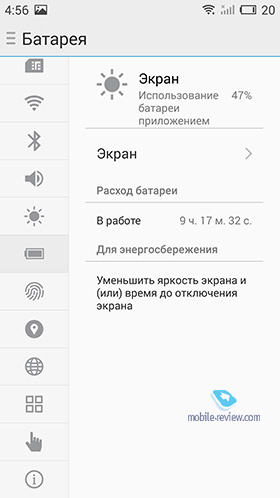 Аппарат поддерживает функции быстрого пробуждения: двойной тап, другие жесты. Есть SmartTouch. При включении на экране появляется небольшая точка, при помощи которой можно совершать различные действия: нажатие на точку – «Назад», движение снизу вверх – запуск панели уведомлений, и так далее. АккумуляторВ этой модели используется несъемный аккумулятор емкостью 3150 мАч, который использует ячейки быстрой зарядки SONY/ATL. При работе с устройством батарейки хватало примерно на 24 часа: около 20-30 минут разговоров в день, около 10 часов использования 3G/4G (постоянная синхронизация почты, твиттера, WhatsApp, скайп и так далее), примерно 5 часов Wi-Fi, несколько десятков фото, час прослушивания музыки. В более щадящем режиме гаджет работает до двух дней. Если оставить только синхронизацию данных (Wi-Fi), то можно рассчитывать на 3-4 дня. До 13 часов в режиме постоянных разговоров. В режиме просмотра фильма (FullHD) батарейка садится спустя примерно 10 часов, в режиме игр аккумулятора хватает примерно на 4.5 часа, в режиме воспроизведения звука на максимальной громкости – до 50 часов.