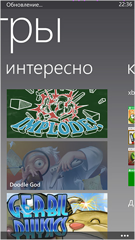 У магазина приложений есть один неудобный недостаток — если вы уже купили приложение, при открытии информации о нем его покупка никак не отображена, то есть вы по-прежнему видите кнопку «Купить». Разумеется, покупать его второй раз не нужно, и при нажатии на кнопку вам скажут, что вы его уже купили и предложат скачать. Многие приложения имеют демо-версии, благодаря которым вы можете попробовать программу перед покупкой. Что касается поиска, то, на мой взгляд, в Marketplace он организован лучше, чем в Google Play. Здесь, по крайней мере, все отображенные после поиска приложения хотя бы имеют отношение к слову, которое вы вводите. В Google Play же можно ввести «FBReader» и получить пятой или шестой ссылкой программу Opera Mini. ![]() На данный момент в Marketplace вы сможете найти около семи хороших твиттер-клиентов, две-три качественные программы для чтения электронных книг, парочку сторонних браузеров, около 9-10 клиентов для социальных сетей и несколько действительно хороших мессенджеров. Полностью отсутствуют как класс сторонние видеопроигрыватели, а также музыкальные плееры. Сторонних лаунчеров и клавиатур, разумеется, тоже нет. В принципе в маркете есть множество приложений, но действительно качественных, на мой взгляд, около ста штук. Их легко найти в топе платных и бесплатных программ, а также в коллекциях. В этом разделе находятся все игры, доступные в Marketplace. Если вы хотите посмотреть список доступных игр в Marketplace, то вас всё равно будет перекидывать в Xbox Live. Условно все игры можно разделить на два типа «игры от Xbox» и «Остальные». В чем преимущество первых? Они поддерживают систему достижений из Xbox. То есть, если вы, допустим, прошли очередной уровень в Sonic, то получите соответствующую награду. Фактически, Xbox Live является аналогом Game Center на iOS.