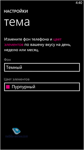 Вся персонализация рабочего стола сводится к изменению заднего фона (черный или белый) и цвета фона самих плиток (тут гамму серьезно разнообразили). Интересно, что некоторые приложения также меняют свой внешний вид в зависимости от смены цвета плиток. Это позволяет сохранять преемственность внешнего вида между сторонними приложениями и встроенными.
