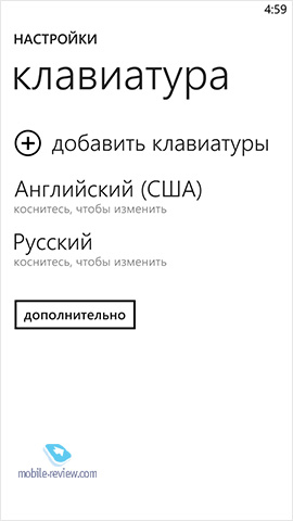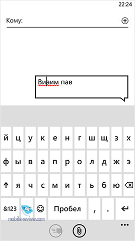 Экранная клавиатура, ввод текста Клавиатура в Windows Phone 8 со времен «семерки» практически не изменилась. Четыре строки символов, никакой дополнительной разметки на кнопках: одно нажатие - один символ. Есть клавиша перехода к вводу цифр и дополнительных символов. Есть кнопка для ввода улыбок (смайлики), есть пробел, клавиша «Backspace» и «Enter». Лично я рассчитывал на возможность установки сторонней клавиатуры, но, к сожалению, Microsoft нас такой роскошью не порадовала. На мой взгляд, данная клавиатура чересчур простенькая. Если уж компания не дает устанавливать другие клавиатуры, так хоть сделайте свою самой лучшей и самой удобной. Но в Microsoft не сделали ни первого, ни второго.