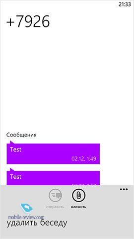 Еще одна особенность работы с сообщениями в WP8 заключается вот в чем. В системе при вводе сообщений вы вначале нигде не видите, сколько уже символов ввели, и это неудобно. Все дело в том, что ОС показывает количество введенных символов числом только после того, как вы превысили значение в 130 символов для латиницы и 60 символов для кириллицы. Этот недостаток известен еще с WP7, печально, что его не исправили. ![]() При вводе нового сообщения выбирается адресат. Чтобы его выбрать, можно начать вводить имя или фамилию контакта, система сама предложит варианты из найденных в адресной книге. Кроме того, можно просто ввести вручную номер телефона или нажать на кнопку «плюс» и попасть в адресную книгу, где уже выбрать необходимый контакт. Текстовое сообщение можно отправить одному или нескольким абонентам. ![]() В настройках сообщений можно включить уведомление о доставке сообщения адресату. При включении уведомления после каждого отправленного SMS вы будете получать ответное сообщение с текстом о том, в какое время ваше сообщение доставлено.