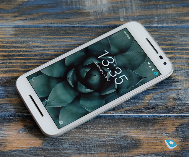ЭкранВ Moto G третьего поколения используется IPS LCD экран с диагональю 5'' и разрешением 1280x720 точек. Дисплей защищен стеклом Gorilla Glass 3 с неплохим олеофобным покрытием, в этом отношении смартфон смотрится выигрышнее многих бюджетных трубок, где «олеофобка» либо очень простая, либо вовсе отсутствует.