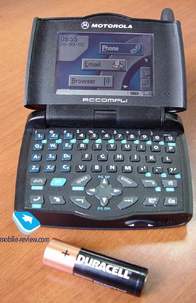 We decide to publish only a short review of Motorola Accompli 009 here. On the one hand, this phone has been already produced for a long time, on the other hand, there are no official lots in our country. We'd like pay attention only on the main features of this device, which will help you to decide whether you are interested in purchasing this phone or not. According to the manufacturers Motorola Accompli 009 is a communicator. It was elaborated as device to suit personal needs of user's. It's very helpful when organizing a day schedule, sending e-mail and SMS messages. All the phone peculiarities, for example, three bands support (GSM 900/1800/1900), are easily explained, the point is that this model is aimed, firstly, to corporative subscribers. The same ideas was used in v100, here you can see a similar squared design and phone construction. When you open it you can get an access to a screen and a keyboard. This phone is equipped by standard QWERTY keyboard, all the keys are small but well-spaced, what allows to input text quickly. Unfortunately, the keyboard has no backlighting, it is partly lighted by screen in the dark but it's not always sufficient.