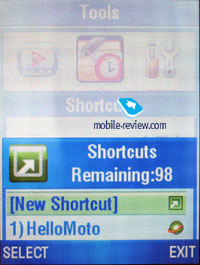 The phone book reminds the one used in Samsung phones (unlimited number of fields per name, you can enter as much as you can), on the other hand it has some obvious advantages and additional parameters (personal photo, ring tone). At the moment Motorola is the only manufacturer that offers such kind of the phone book, the others have certain limitations on one of the parameters (one photo for each name, and the lack of ability to bind it to separate numbers, the same goes for the ring tones). Messages. There is a support for EMS and working with plain messages is easy. Working with MMS doesn't bring any inconvenience; everything is simple and easily understandable. The messages can be attached with pictures made by the built-in camera, sound files. The ten predefined templates are really great, be sure to check them out. ![]()