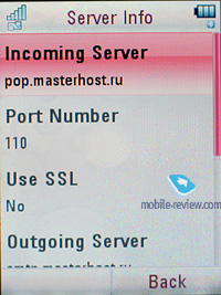 Volume of an MMS message is not capped - in our case, the handset delivered easily a 2 Mb message. The handset houses Postcard MMS template – in fact it is an MMS, meant for printing, on reception. As a rule, it is designed as a postcard: picture on the front and text on the rear. The good things about the MMS message here include scheduled sending, on set date and time. The mail client can handle POP3/IMAP/SMTP-servers, it is possible to create and setup several profiles. Message size is unlimited (the biggest message we retrieved was about 8 Mb), all types of attachments are supported (reading and loading don’t bring any problems at all, since the handset saves everything as is). Setting up your mail, you can enable scheduled mail check, allow the handset to retrieve the entire message, headline only first 1, 5 or 10 KB of it. What I like about the mail client is the ability to receive mail on launching the application and send all letters on shutting it down. You can disable the notification of new letters (matches the icon for ordinary messages). Attachments in the form of html-files are opened in Opera 8.5, which comes pre-installed with the phone. This approach ensures best possible page viewing experience. All attached files are viewed in the list form, enabling you to pick particular files. The handset readily deals with any encodings, including the Russian ones, hence all letters we couldn’t read with UIQ or S60 based smartphones are a cinch to read here. I received about 500 letters a day and they all were crammed into the single list. Such huge amount of mail made the handset freeze for a few seconds every time I was attempting to open it, but then it enabled navigation through the list.