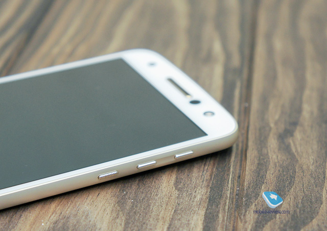 Над экраном находится сеточка динамика, он одновременно является разговорным и основным. Несмотря на такое совмещение функций, динамик в аппарате хороший как с точки зрения передачи речи, так и для мультимедиа. У него достаточный запас по громкости, так что звонок вы не пропустите. Тут же можно видеть датчик освещения, фронтальную камеру и светодиодную вспышку.