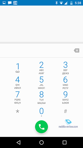 В остальном же перед нами дисплей топового класса: высокое разрешение, отсутствие воздушной прослойки, защитное стекло, олеофобное покрытие, небольшие рамки и, конечно же, максимальные углы обзора. Операционная системаАппарат работает под управлением Android 6.0.1, и в Motorola уже запустили тестирование свежей версии 7.0. Вообще, с обновлениями у Moto в последнее время всё очень-очень хорошо. Помимо этого, меня очень порадовало, что изменения интерфейса стокового Android сведены к минимуму, о них я расскажу чуть ниже. Если же вы хотите узнать про Android 6.0 побольше, то очень рекомендую почитать наш подробный обзор этой операционной системы. Первое, пусть и небольшое, но очень приятное добавление — русские кнопки в фирменной звонилке от Google. Не знаю, есть ли в этом заслуга российского офиса Lenovo, но если есть, то они большие молодцы. Как говорится, мелочь, а приятно.