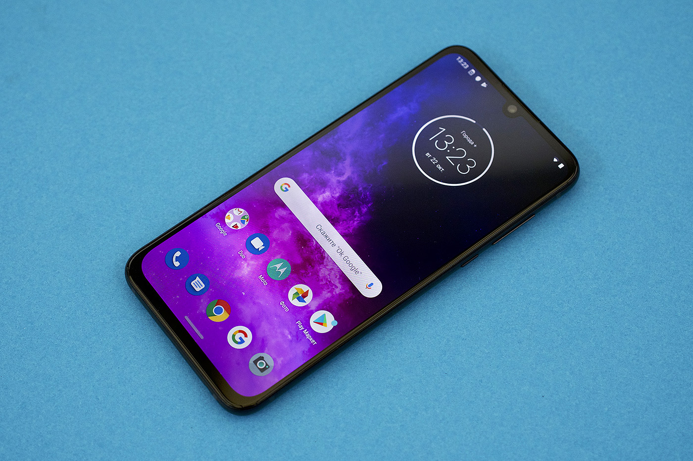 ДисплейТехнические характеристики экрана следующие: 6.4 дюйма, 1080х2340 точек (19.5:9), OLED, 403 ppi, автоматическая регулировка яркости, Panda Glass (это первый аппарат с таким стеклом, никаких особенностей не обнаружил). Мне дисплей в Moto One нравится, так как он предлагает хорошего качества картинку, адаптивная регулировка работает хорошо. Но у Motorola есть врожденная проблема, которая наблюдается из модели в модель: при съемке фотографий или видео экран становится достаточно тусклым.