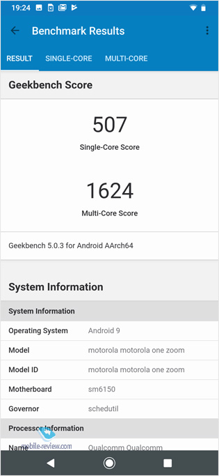 Память, оперативная память, производительностьВ телефоне 4 ГБ оперативной памяти, встроенной памяти 128 ГБ (других вариантов нет), но есть также поддержка карт памяти microSD до 512 ГБ. Чипсет внутри телефона – это Qualcomm Snapdragon 675 (технорма 11 нм), два ядра Cryo 460 Gold с частотой до 2.0 ГГц, 6 ядер Cryo 460 Silver с частотой до 1.7 ГГц, Adreno 612. Производительность этого решения на хорошем уровне, посмотрите на результаты синтетических тестов ниже.