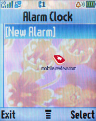 Shortcuts are located in the same menu. You can create shortcuts not only for various menu sections, but for a definite wap-site as well. Alarm clock. You can create several alarm clocks and choose a custom ring tone, name and volume, type of reoccurrence (daily, single time) for each of them. This phone was designed for continuous, that's why entering names and titles for the alarm clocks is required. Alarm clocks are activated in one touch, and a note really eases work with them.