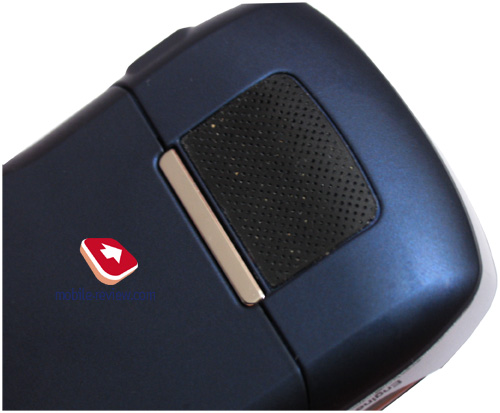 A metallic grid on the back panel hides the main loudspeaker. We should praise the good loudspeaker design, as the grid looks very stylish. However we incorrectly supposed that the sound will be too low when the handset is in a case and pressed with its loudspeaker close to the body. The main one used during conversations duplicates it. The body construction allows the sound of this loudspeaker to go to the fore panel. If you open the device, you will see a loudspeaker's gap on the top. That is a big slot. When the handset is closed, the sound gets to the body lug and is reflected up (and that is the front panel). You should understand that these loudspeakers are different in power, but this solution allows carrying the phone wherever you like.