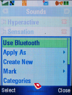 Bluetooth settings were slightly changed; the device is seen for 3 minutes now. Now the Print option is available, printing is possible for a message, an organizer note or a phonebook entry. ![]()