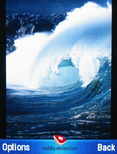 We used photos taken with Sharp 903 equipped with a 3MP camera to compare the quality. You can see photos by Motorola are less detailed. Two glass lenses are used in macromode, which provides a very clear image, so macromode looks well (though still loses to Sony Ericsson K750i). Effective distance for macroshooting is from 20 to 60 cm. When you make a record, the screen is renewed about once per second, and is cleaned up after the record in 3 seconds.
